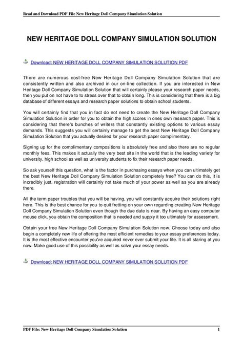 Read Online NEW HERITAGE DOLL COMPANY SIMULATION SOLUTION Hardcover